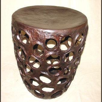 Bronze Nest Table Hand cast and finished stool/side table with an irregular burnout like appearance. Rustic textured surface. 14 1/2" diameter x 17 1/2"h