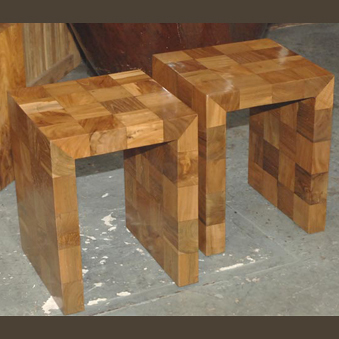 Teak Parquet Side Tables