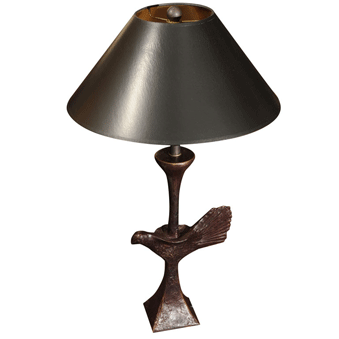 Studio JRM Bronze Dove Desk Lamp Lost wax casting of a stylized dove with a rustic hammered effect, Hand finished for a patinated look of old bronze. Hazed 3 -way socket with line switch, harp and finial. Lamp shade not included. Height without shade to top of lamp 14". Square base is 4" 23" high x 4" diameter
