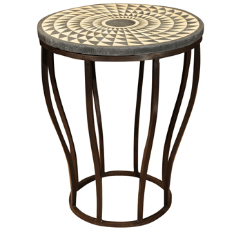 Studio JRM Tubular Bronze Shagreen Side Table Tubular bronze bent with an intricately inlaid spiral pattern of black and cream colored shagreen. Height: 20", Diameter: 16"