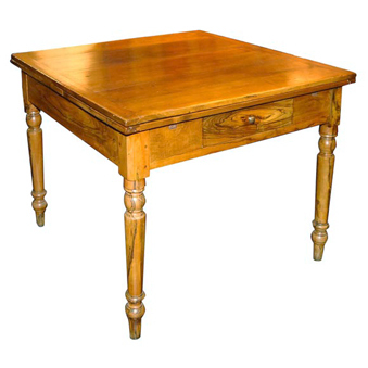 Tuscan Dining Table With Leaves Dining Table with 2 leaves which pull out. Table base is all olive wood. Top is walnut with walnut leaves. Turned legs with a single drawer. Italy, circa 1880. 39"w x 39"d x 32"h