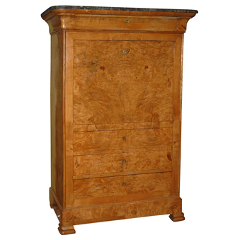 Louis Philippe Secretaire with Marble Top (4 Drawers) Circa 1830 Drop front desk with embossed leather inside. Hidden drawers inside with original black marble top. 3 drawers in bottom half. Height: 60", Width: 39", Depth: 17"