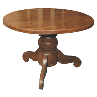 Dutch Colonial Teak Round Pedestal Table circa 1930. Massive pedestal base with round top. Solid teak. Dutch Colonial period from Java. Completely restored with natural rubbed oil finish. 46" diameter x 30" high