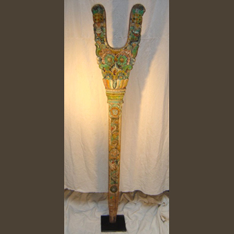 Painted and Carved Wooden Ship Boom Holder with Iron Base